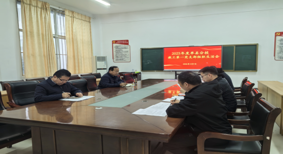 2026年3月9日,单县分校教工第一党支部在6101会议室召开2025年度组织生活会,支部全体党员参加会议,党委书记赵杰到会指导并作点评讲话。