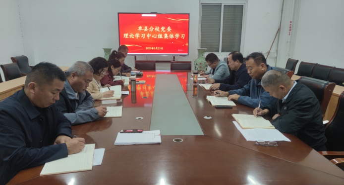 9月23日下午,单县分校党委理论学习中心组集体学习了习近平总书记《在纪念中国人民抗日战争暨世界反法西斯战争胜利80周年大会上的讲话》,会议由分校党委书记赵杰主持,分校党委理论学习中心组全体成员参加学习。单县分校副校长张崇国、马恒两位同志分别作了重点发言,与会者联系思想和工作实际进行了交流讨论。