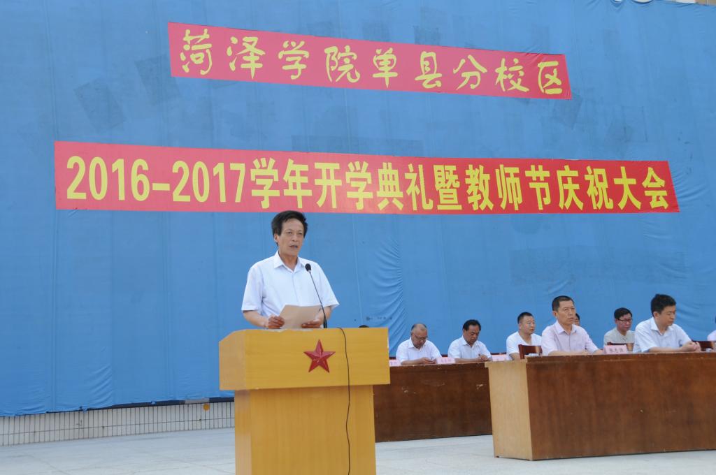 9月8日上午,单县分校区隆重举行2015—2016学年开学典礼暨第32个教师节庆祝大会。分校区党委书记武尚民、校长田忠太出席会议并讲话。武尚民主持会议。